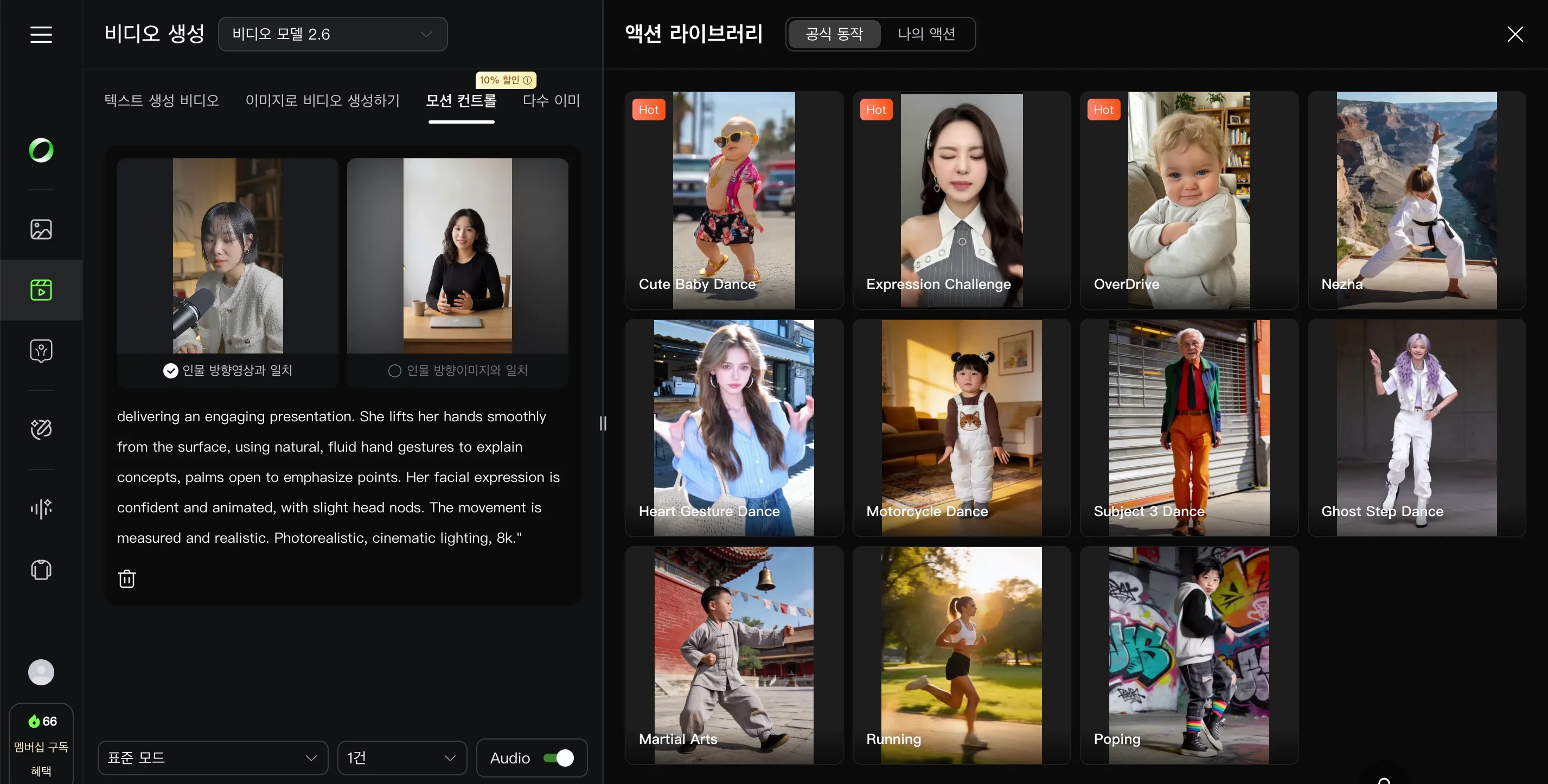 모션 원본 영상, 결과, ai 이미지 모두 동일 인물 → 자연스러움