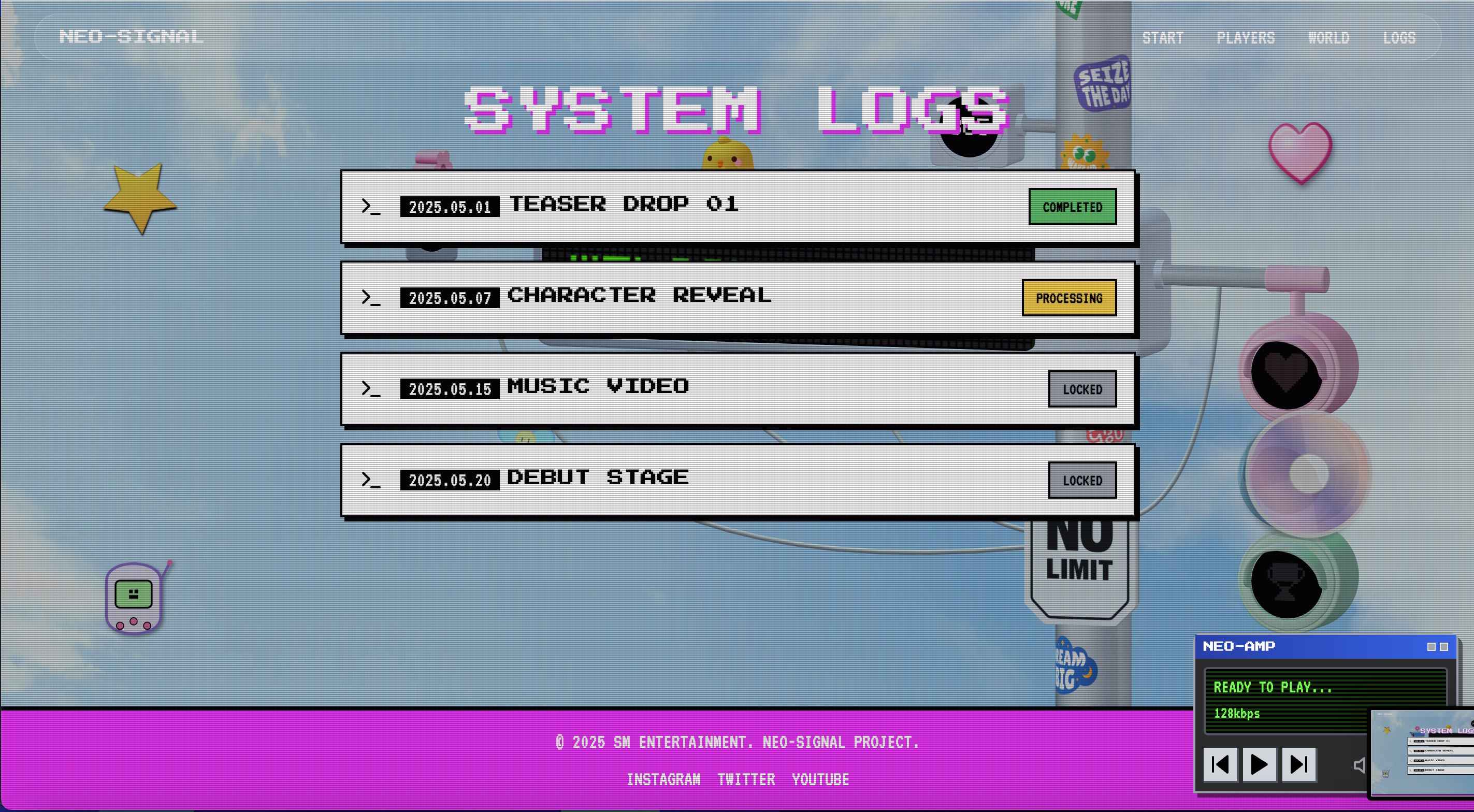 임의로 y2k + Kitsch 컨셉의 sm 신인남자아이돌 웹사이트를 제작해보았다.