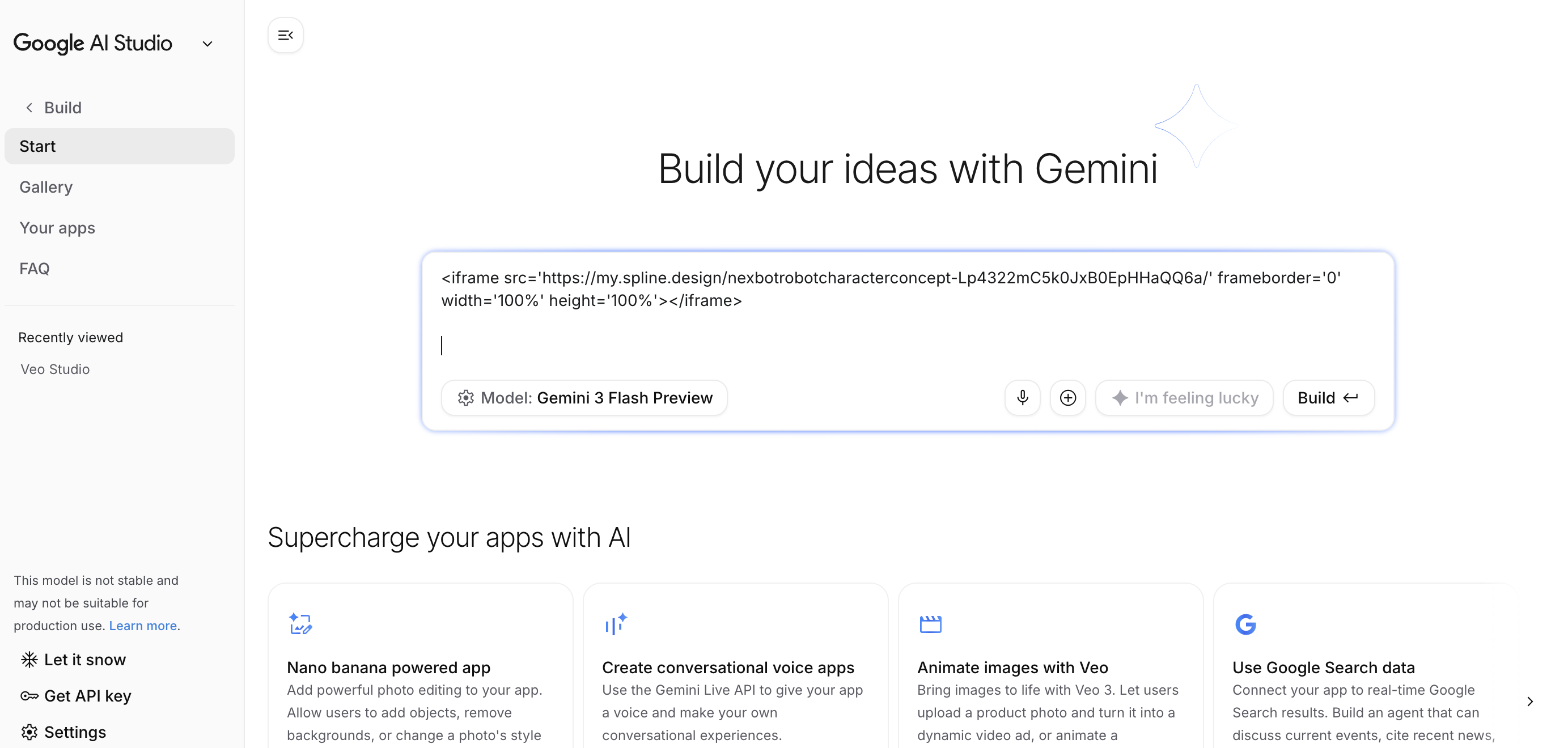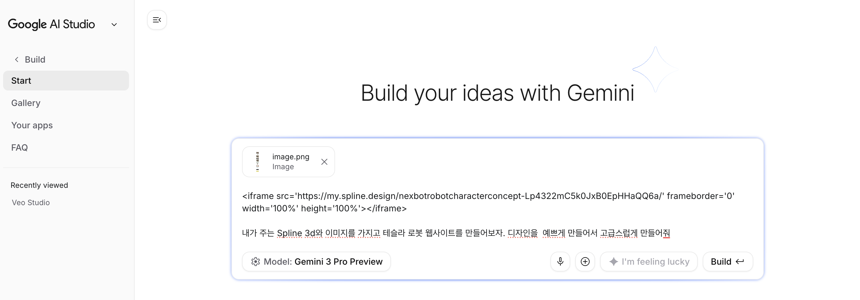 AI 스튜디오 - Build App - 복사한 링크 붙여넣기