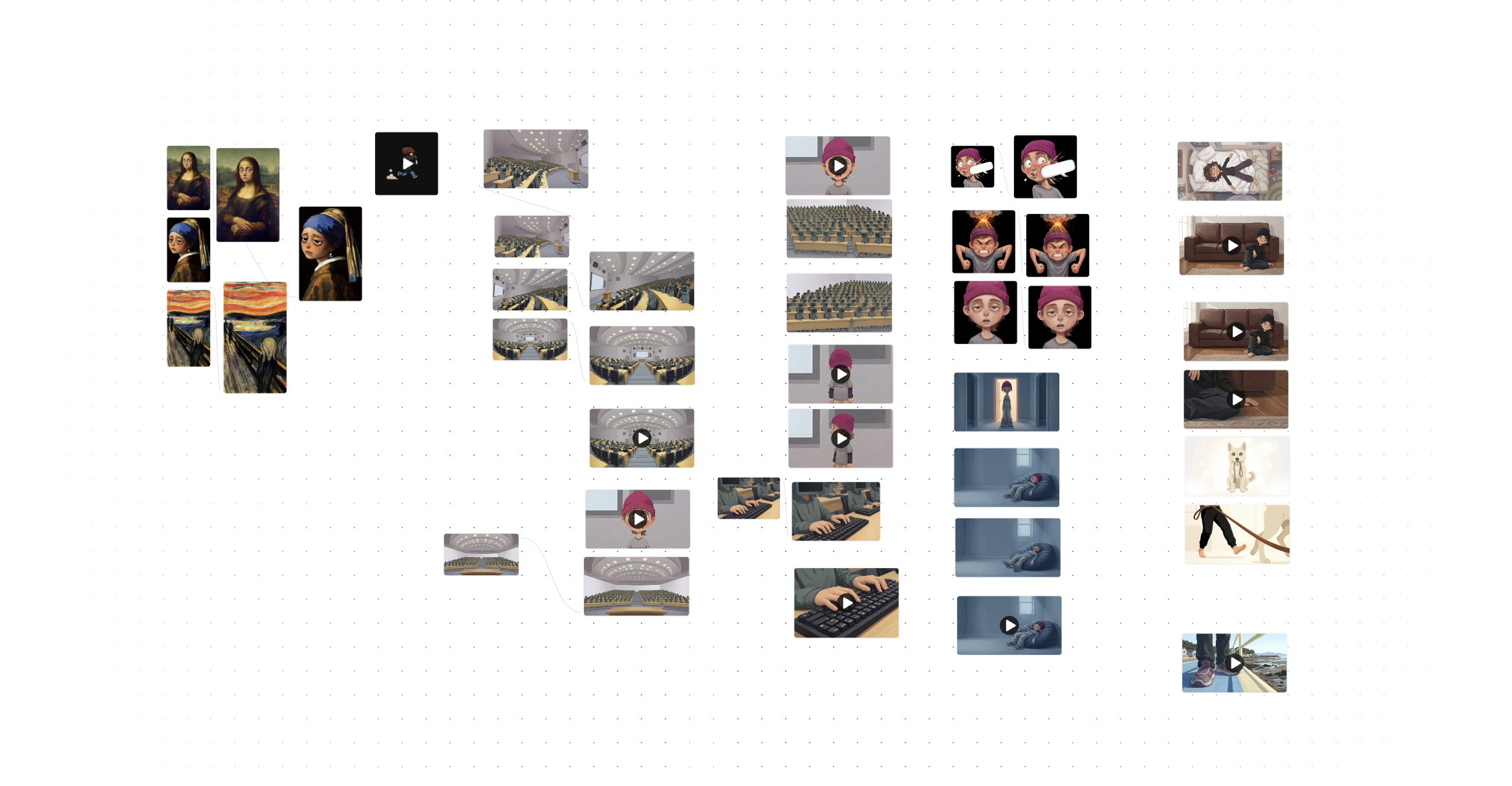 기획에 시간을 많이 쏟았던 것 같다. 흐름은 초기 기획과 비슷하지만 어떤식으로 풀어낼지 고민했다. 단순 애니메이션으로 다 풀어내야 하는지 더빙을 어떻게 할지, 사운드에 대한 고민을 많이 했다. 그러다 미술관과 전시를 테마로 제작했는데, 예쁘게 봐주면 좋겠다....교수님이
