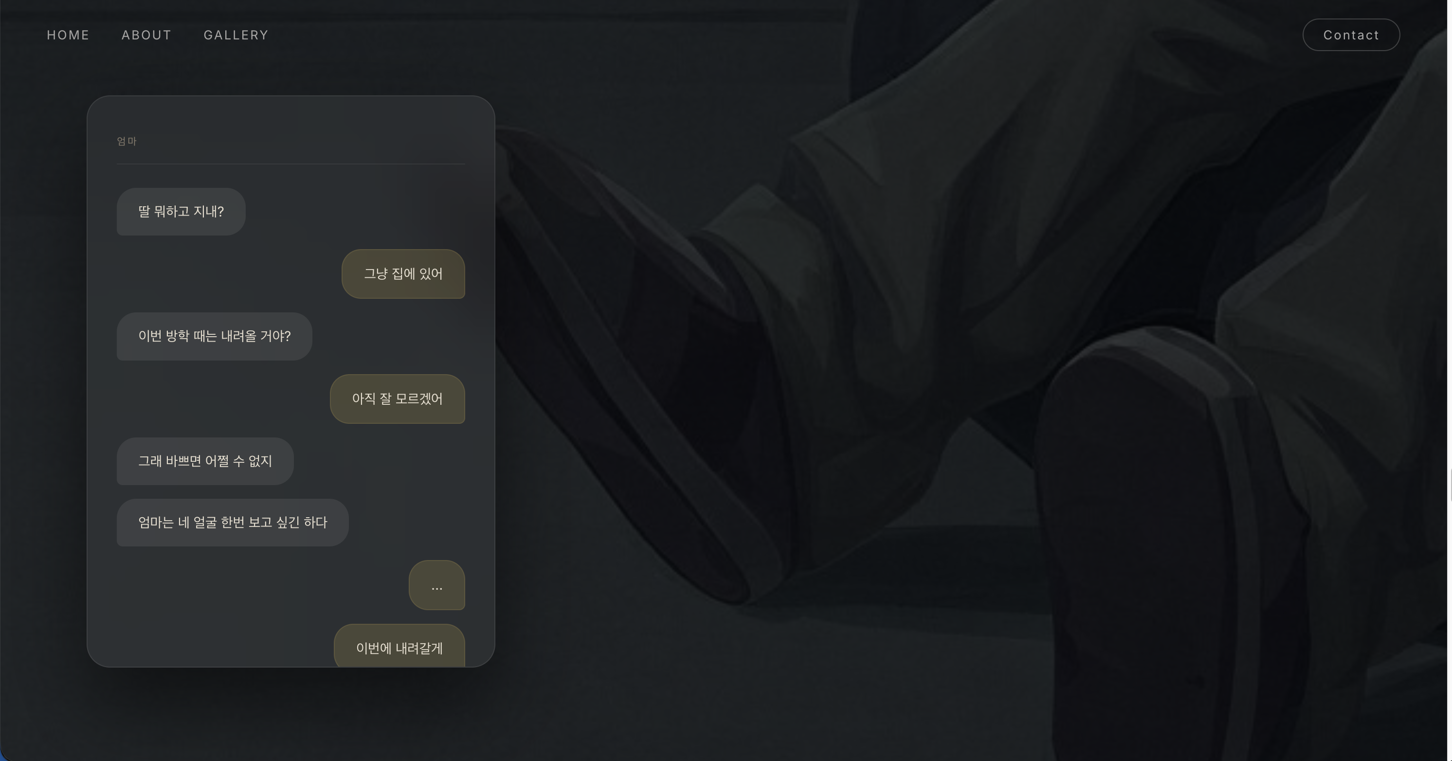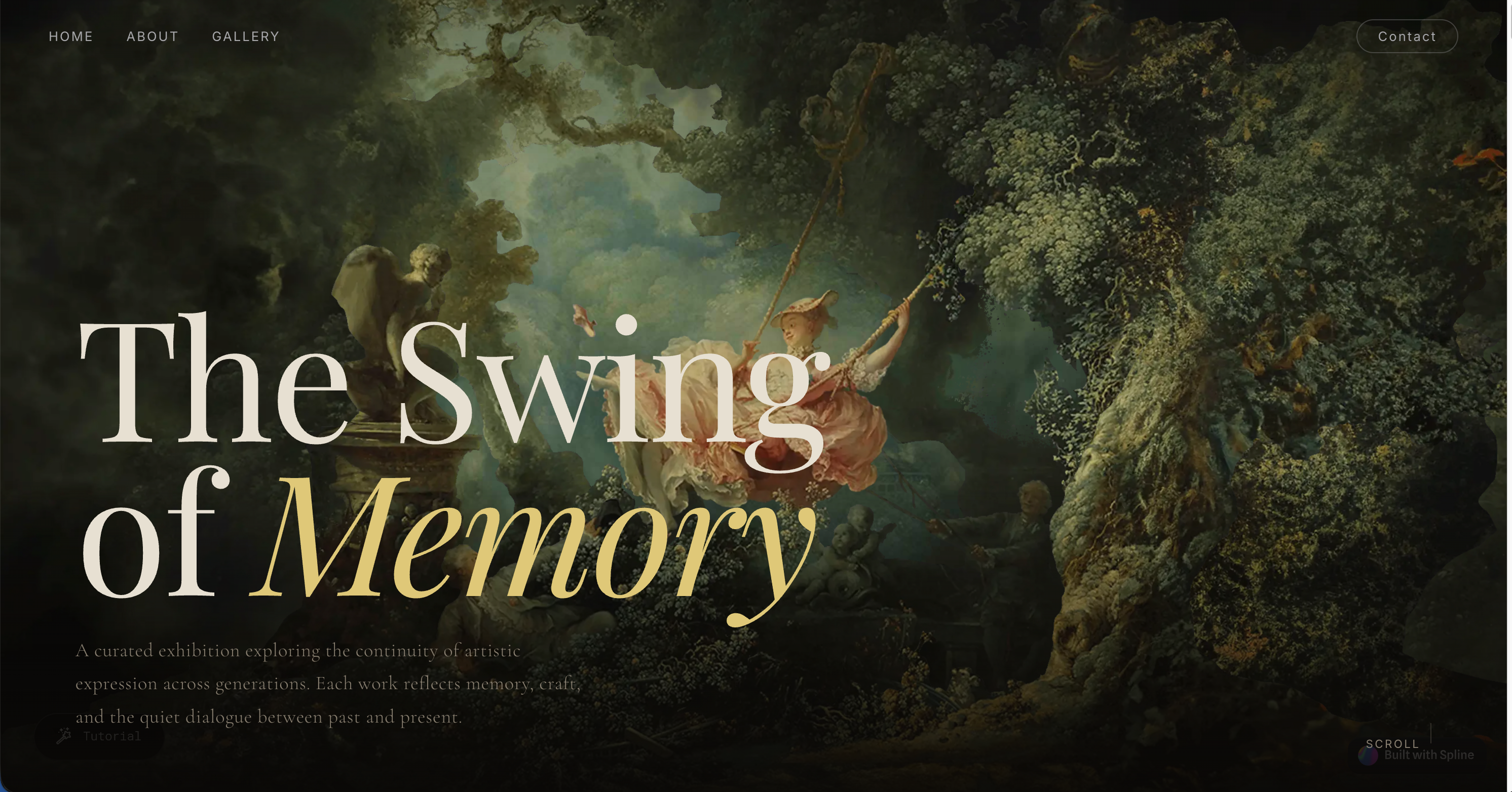 The Swing of Memory는 ‘기억 미술관’이라는 가상의 미술관 웹페이지와 특별전 형식을 빌려, 제작자가 작년 번아웃을 겪은 이후 가족, 강아지, 자연을 통해 다시 감각과 일상을 회복해가는 과정을 풀어낸 프로젝트이다.