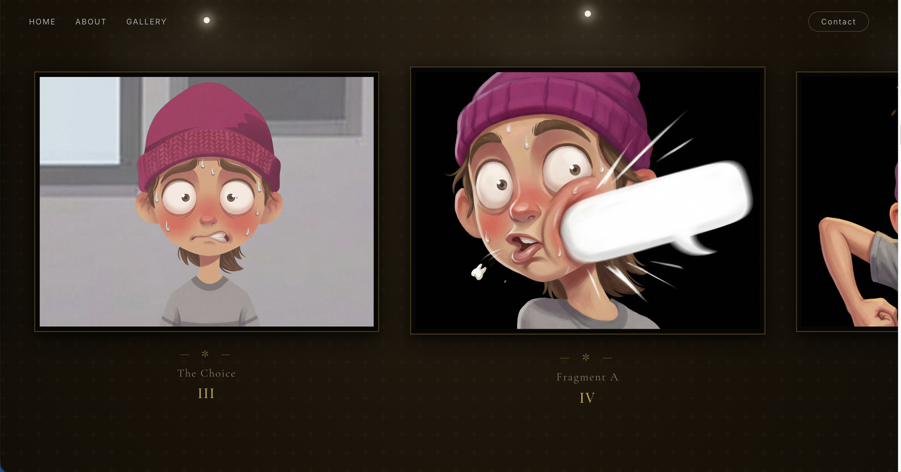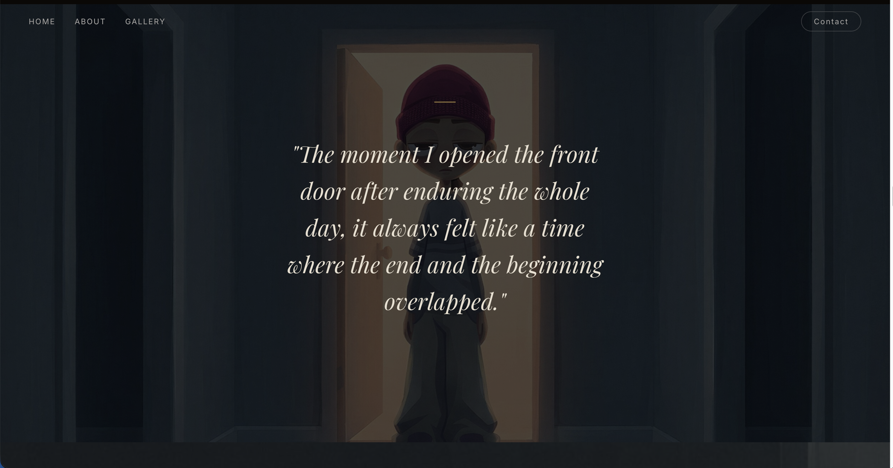 영상은 미술관 웹페이지를 소개하는 형식으로 시작되며, 웹페이지 속 각 슬라이더와 작품은 단순한 이미지 전시가 아니라 번아웃과 회복의 과정을 담은 장면들로 연결된다. 특히 2D 애니메이션과 실사 영상을 결합해, 감정과 기억은 애니메이션으로, 실제 회복의 순간은 실사로 보여주며 개인의 경험을 보다 설득력 있게 전달하고자 했다.