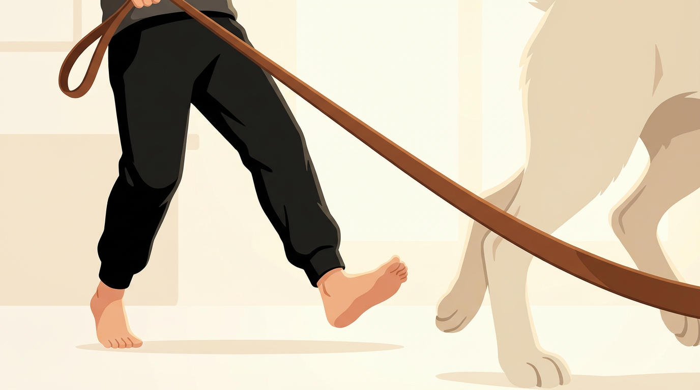 4) 강아지가 목줄을 물고 오는 장면